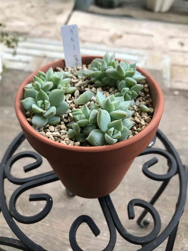 一枚の葉挿しが多頭になり一列に並んで大きくなったので