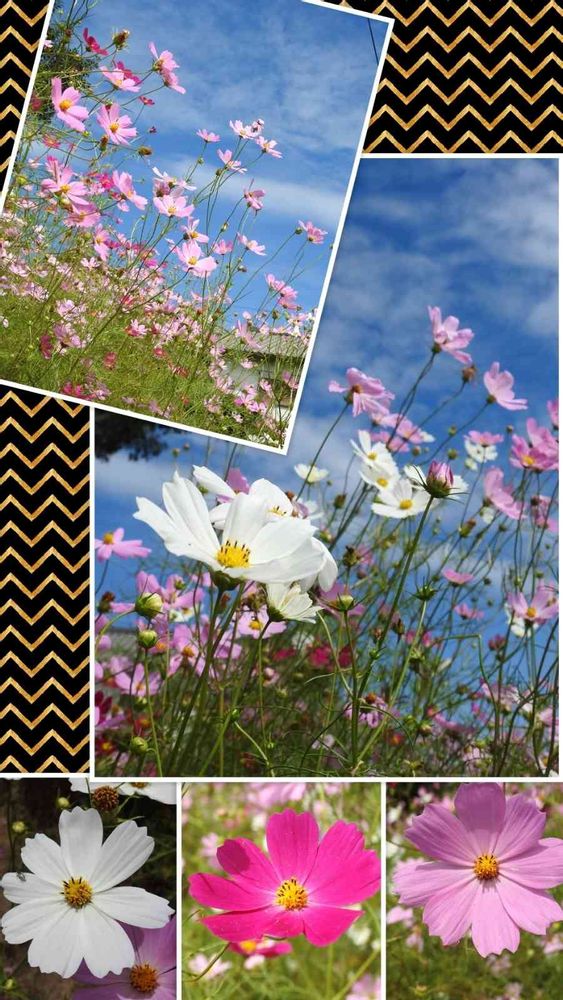 民家の庭先で青空に映える🌼🌸🏵️コスモスの花🏵️🌼🌸