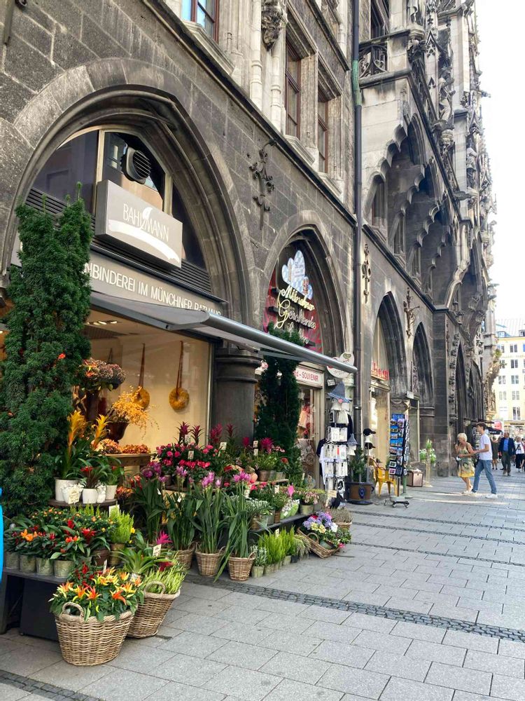 重厚な石作りの建物に鮮やかなフラワーショップ❣️
