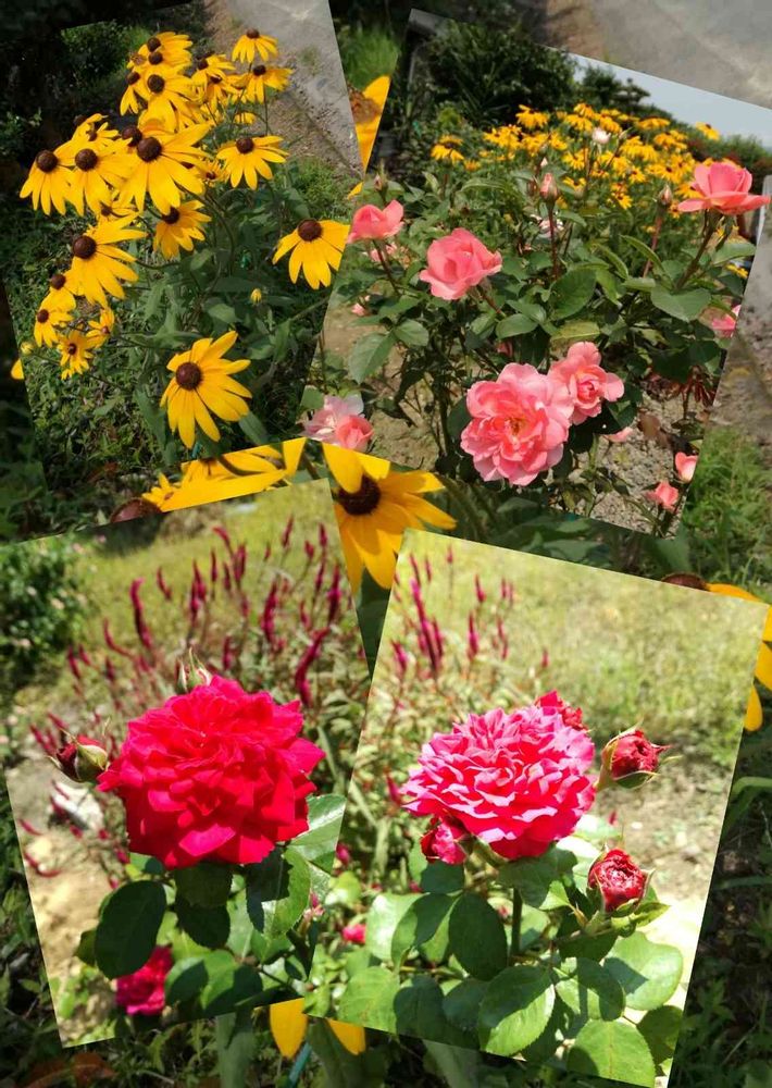 ↙↘薔薇🌹の後ろでケイトウがメラメラ🔥燃えてます(ФωФ)