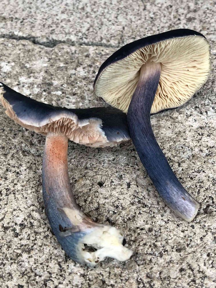 8月29日、古賀志山にて、初めて見る👀「コンイロイッポンシメジ」毒は無く食べられる様ですが、余りに色が、毒々しい濃紺のためか、味も食感も解らないようです⁉️