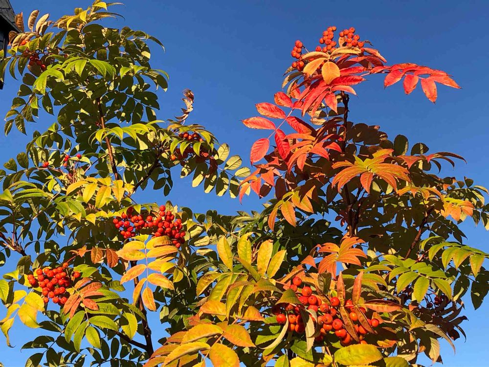 街路樹のナナカマドが紅葉し始めました🍂🍁🌾🍄今日も爽やかな秋晴れです😄☀