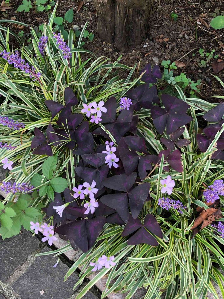 木陰にオキザリスとヤブランが