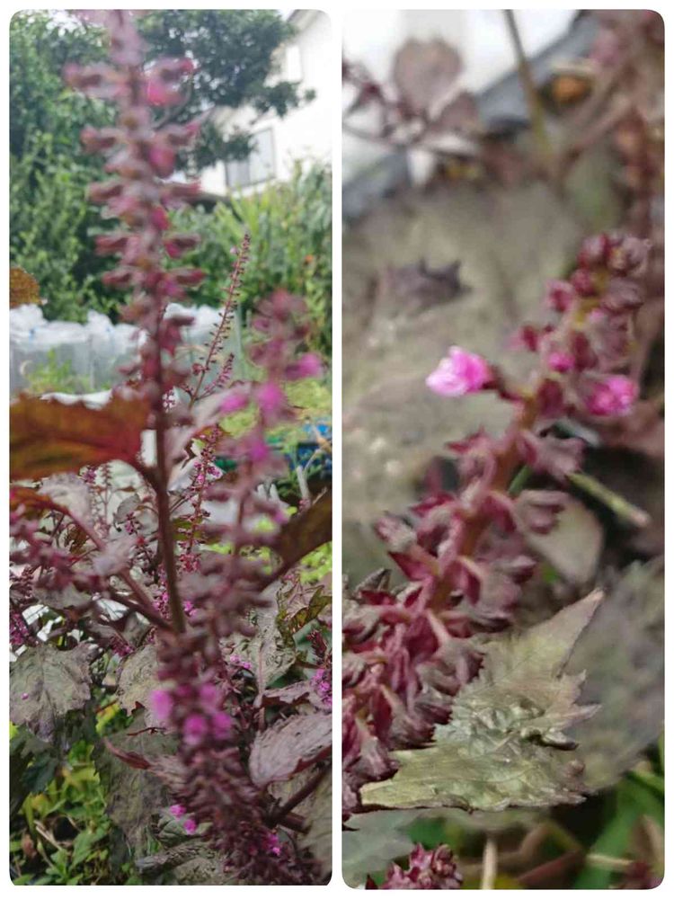 赤紫蘇の花赤いんだねえ🎵良く見るもんだね🎵