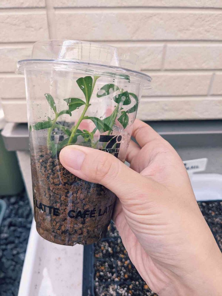 昨日、根腐れでばっさり切り戻したサントリーフラワーズさんのミリオンベルプチホイップ、挿し穂にしてみました✨