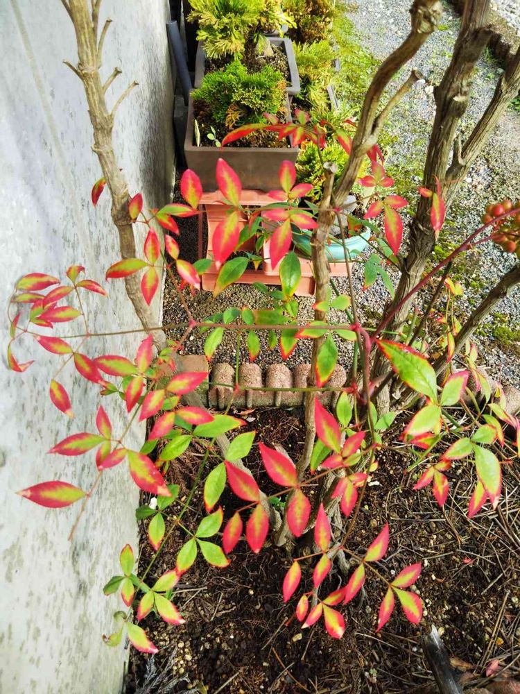 おはようございます、台風の影響➰🌀?😵ここは三大風の里でした👴昨日GS南天の紅葉(綺麗でした)🍁みとれてました。朝歯磨きしながら、我家は😀お〰️😘中々のグラデーション📱今まで南天は実しかみてませんでしたが、これからは葉の鑑賞もありですね😃奥は岩ひば。