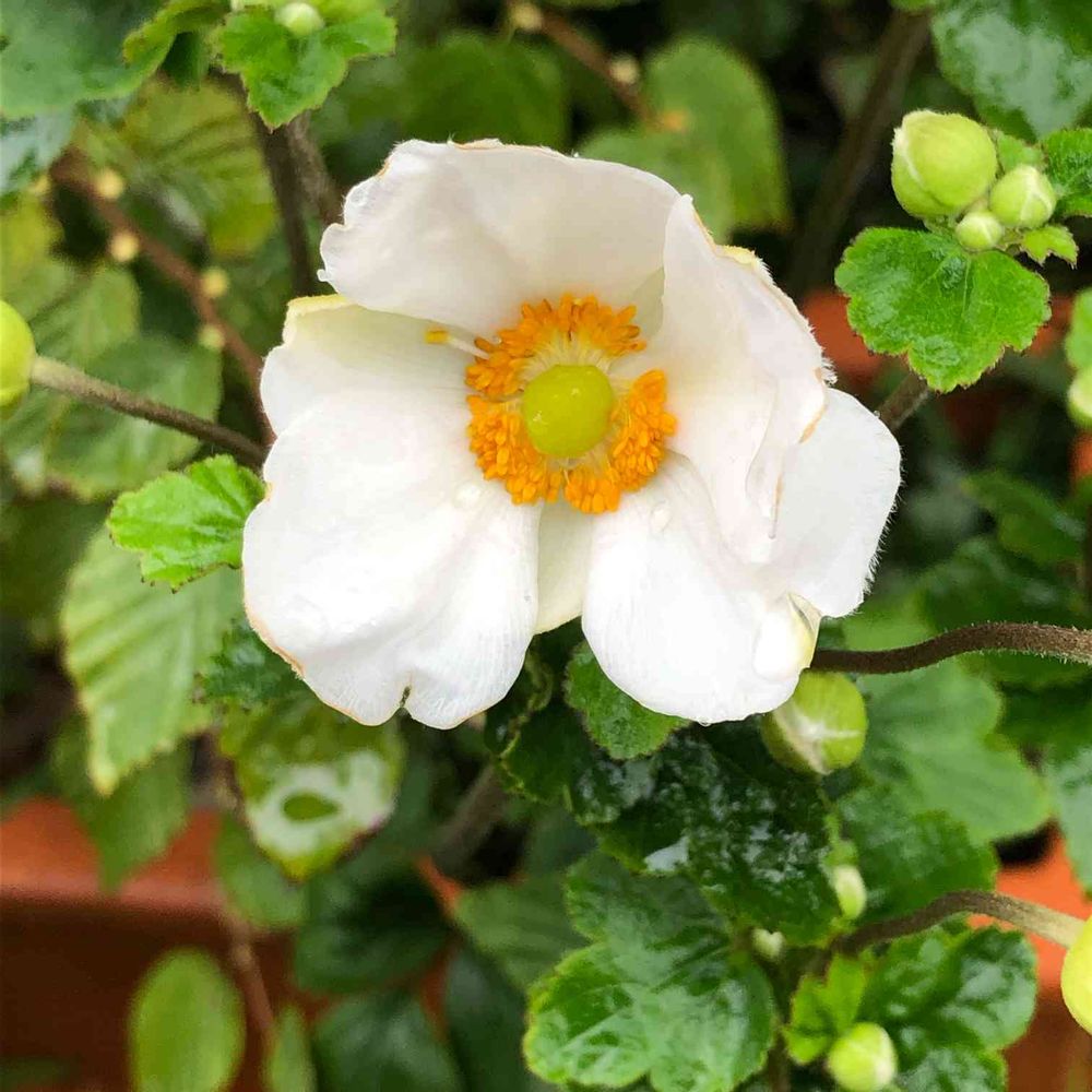 先日雨の日にポツリと白い綺麗な秋明菊が咲いていました(^^)