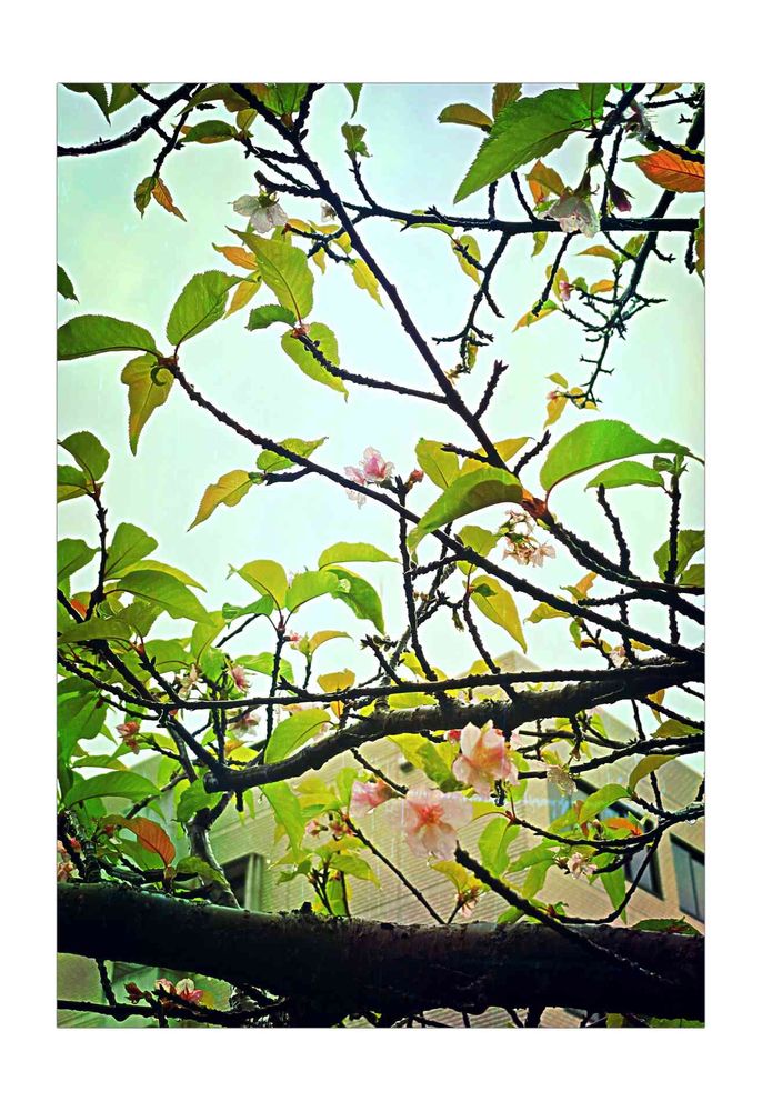 @"The unseasonable cherry blossoms are in bloom,