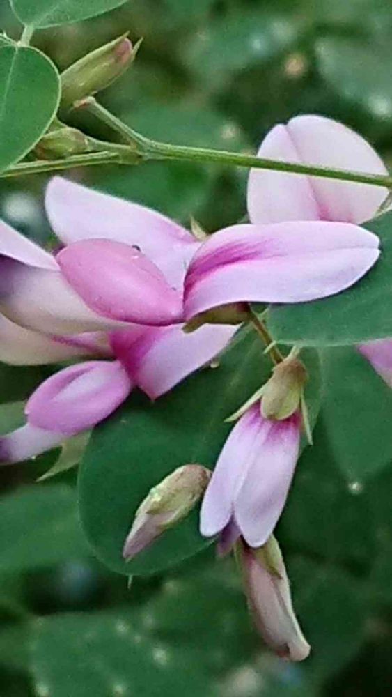 庭の萩が咲き始めました、その一部を📱に、今にも羽ばたきそうな、そんな雰囲気が、、、。