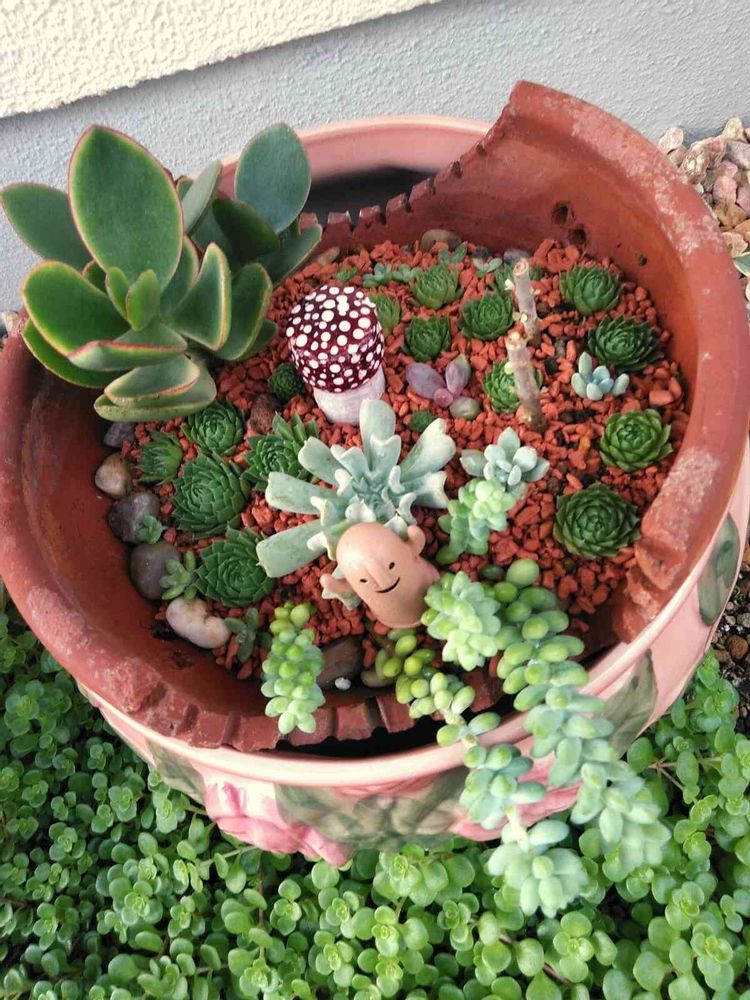 下の万年草の森に惹かれました~💕全体の雰囲気が凄く可愛いです😆うちはセダムがハゲ散らかってます(塗料ではありません😂)