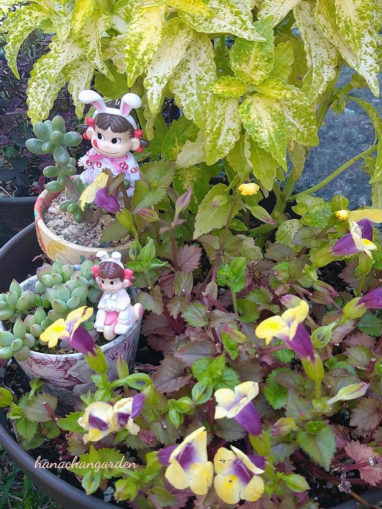 先月の、ペコちゃん祭りの時と同じコリウスライムシャワーと、トレニアムーン 💛💛💛 さんの上で、つぶつぶの、亀の卵 さんと、ペンデンス で、参加します😉