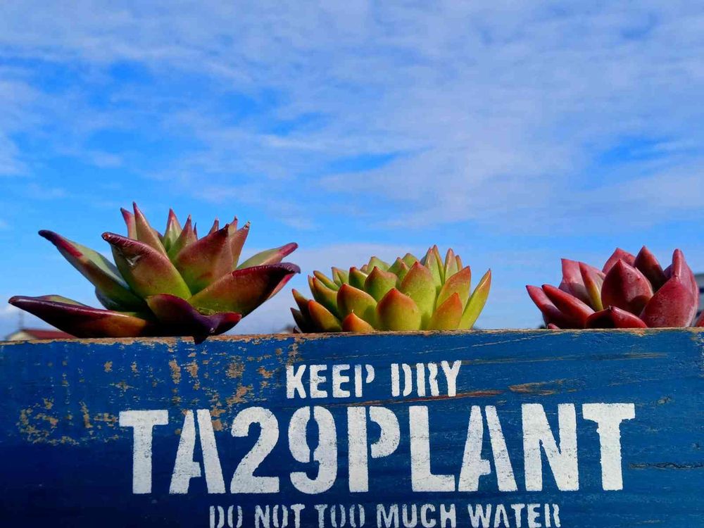 青空バックに届いたばかりの多肉in。置いてるだけです。