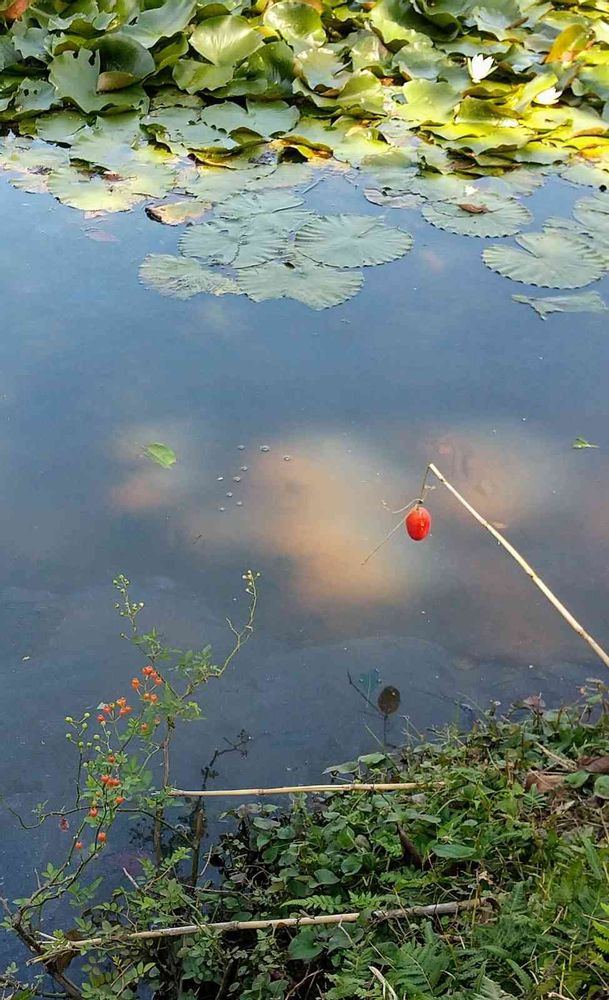 そしたら池にも実が吊るさがっていて、ビックリだよ。🟡🟢🔴