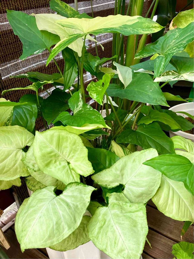 バルコニー/ベランダ,シンゴニウム ホワイトバタフライ,シンゴニウム・フレンチマーブルの投稿画像
