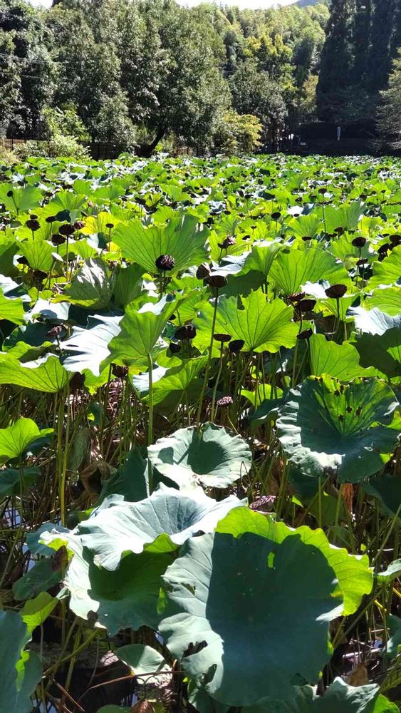 他の人も同じように驚いてたほどの大きな蓮の葉っぱ。今まで見たことのない大きさと数の蓮の種。