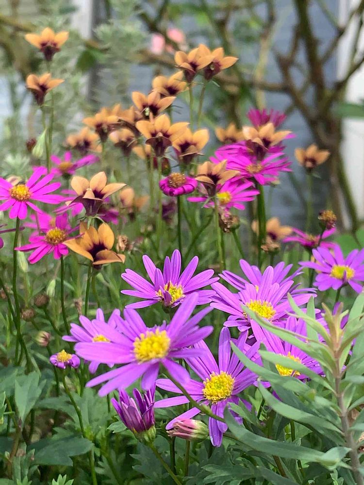 去年の秋の寄せ植えが今ももりもり咲いてくれます。