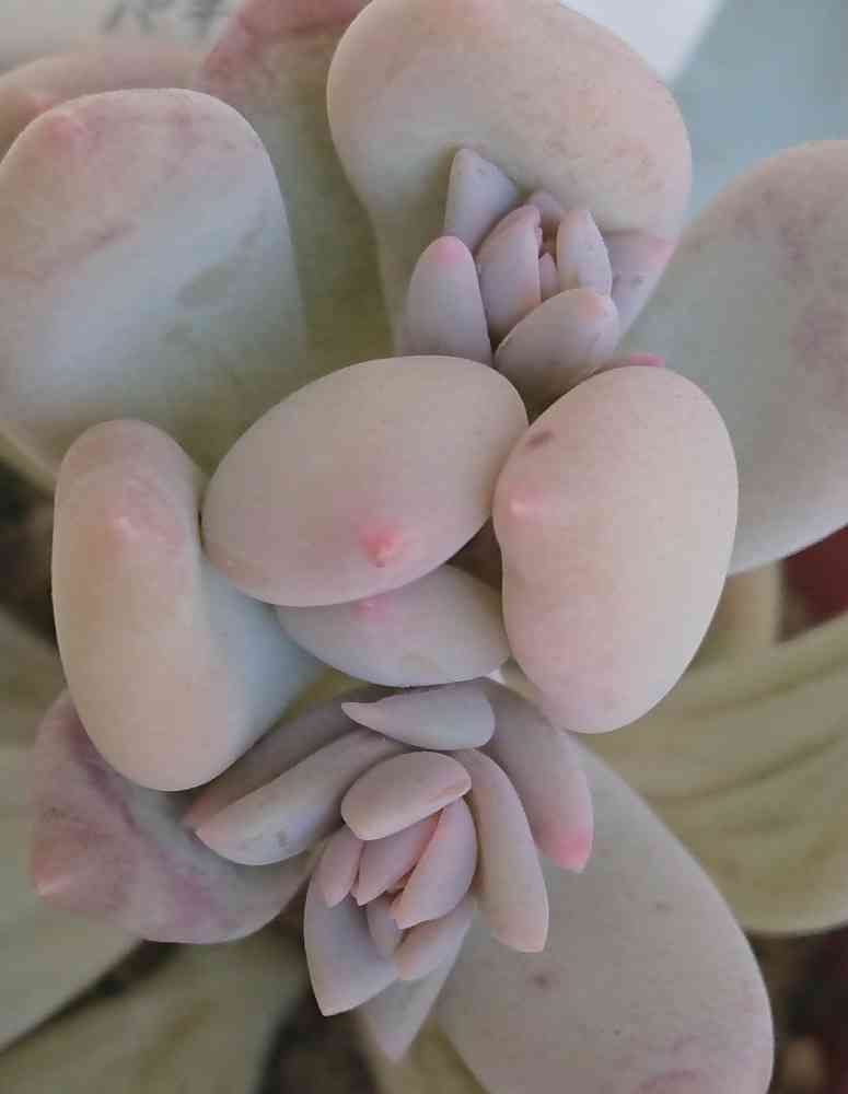 うちにいるフーケリーだったかな?プックリ系だけど3つが縦に伸びて頭が重いから鉢が倒れるくらい伸びてるwww