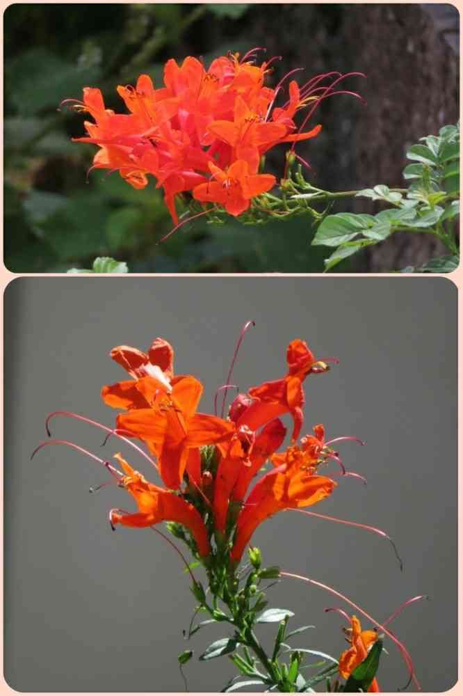 ヒメノウゼンカズラ(姫凌霄花、学名Tecomaria capensis)は南アフリカ原産で、ノウゼンカズラ科ヒメノウゼンカズラ属の高さ2~3mになる半つる性低木。葉は対生する長さ15cmの奇数羽状複葉で、5~9個の小葉からなる。小葉は広卵形~卵円形で鋸歯がある。枝先に長さ10~15cmの密な総状花序を出す。花は橙赤色で、長さ3cm、径3.5cmの漏斗状となり、先が2唇状に5裂し、雄蕊は4個あり花の外に突き出す。テコマリア・カペンシスやケープ・ハニーサックルとも呼ばれる。