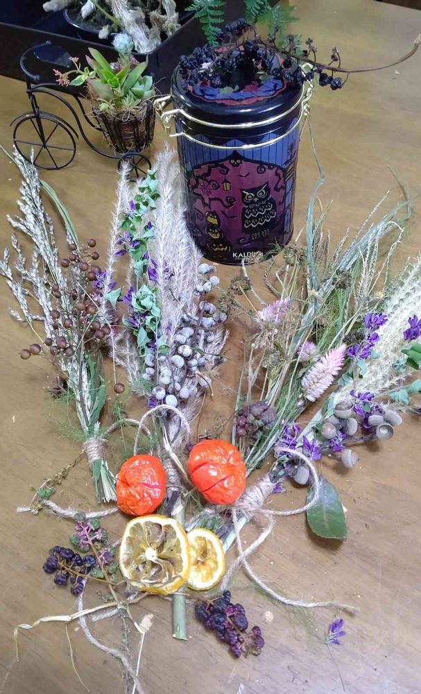 仕事の合間に野山で積んだ木ノ実や草をコツコツ干してみた🥰