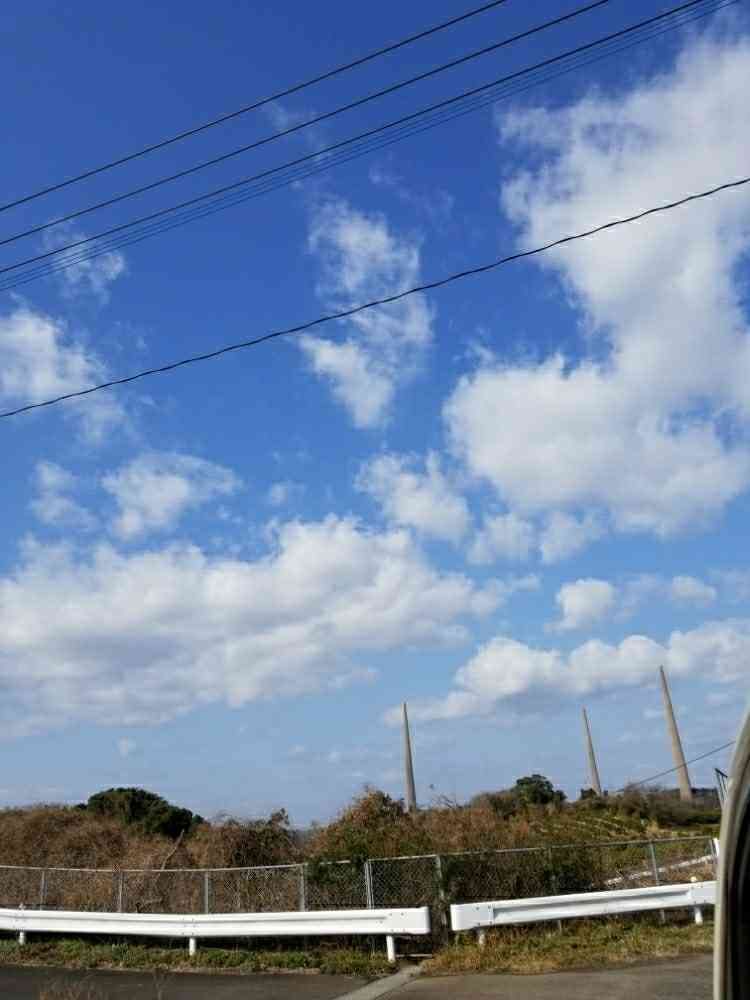 長崎市から車を走らせ佐世保市に向かう途中に現れ、車内では「3本の煙突みたいなのなんだろうネ⁉」で終わりましたが数時間後にハウステンボスでわかりました☺🌼🌿