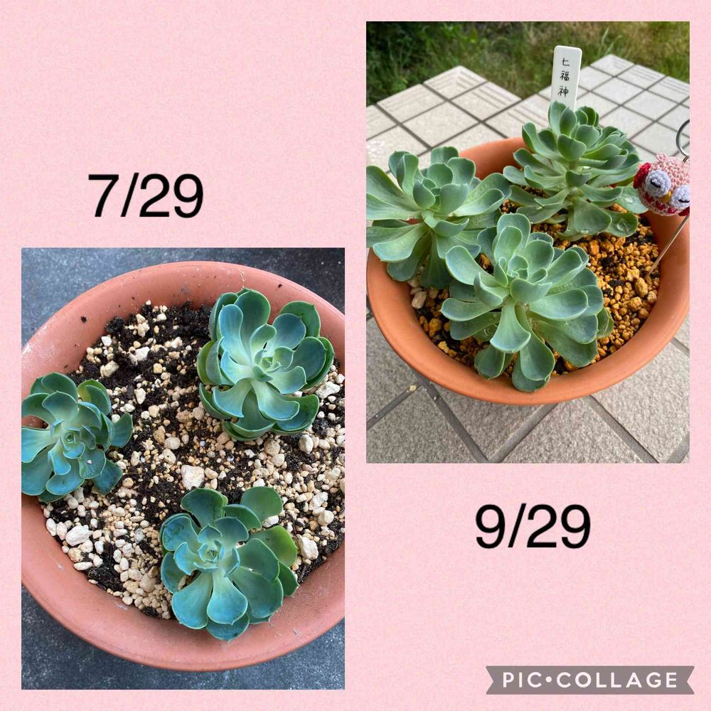 雨があたらない玄関先で育てました。夏の太陽が高い間は、半日影で、七福神さんにとっていい環境だったようでよかったです💕