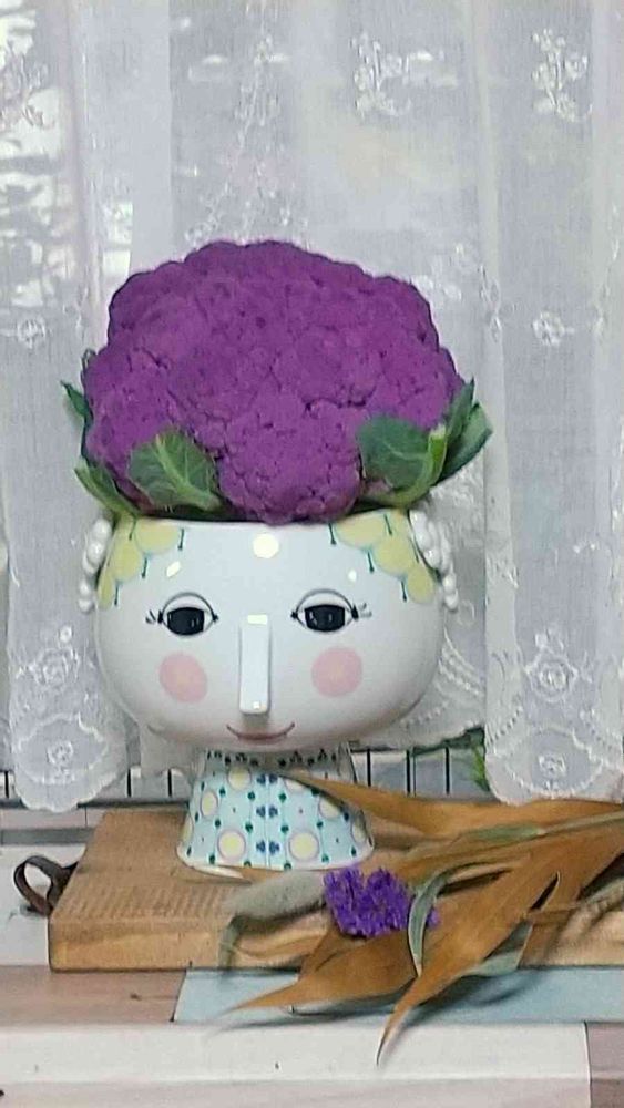 私、今日は出掛けていて疲れてたのですが、あの子ちゃん見た瞬間、も〜疲れが一気に飛びました😂😂 紫のカリフラワー初めてです!! 紫アフロちゃん💜最高ですよぉ😍👍