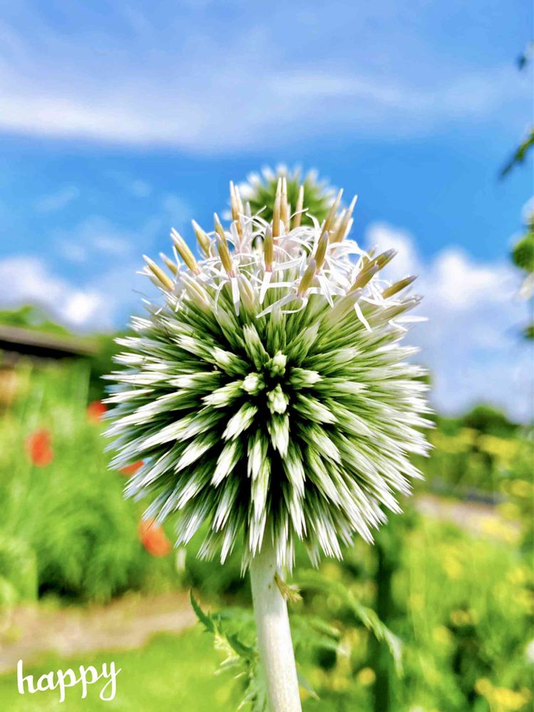 ルリタマアザミ、まん丸、トゲトゲして可愛い(♡˙︶˙♡)ね。