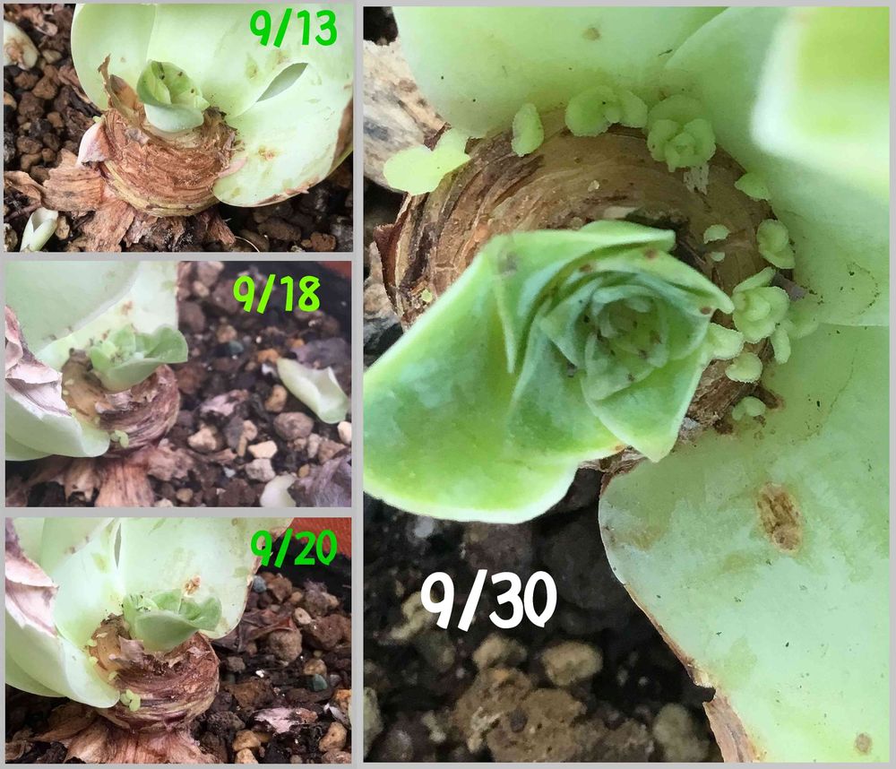 葉の間に水が溜まって 中心部が黒く腐ってきたので