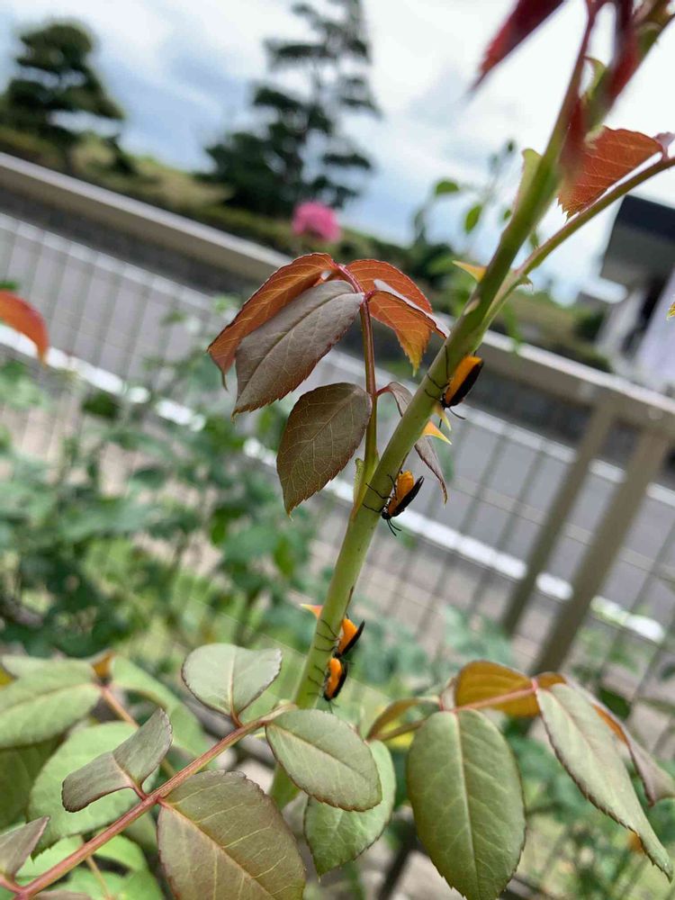 この後、同じ株の隣の枝も2台縦列してました。好き嫌いあるのかな〜?ちなみにルージュピエールです…