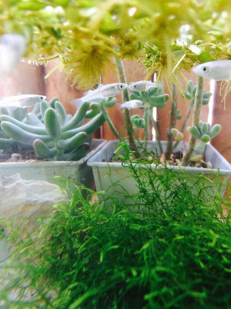 わ〜素敵なpicですね〜✨メダカが空を泳いでる〜💙🐠 多肉ちゃんと水草の色合いがとても良いですね(*^^*)