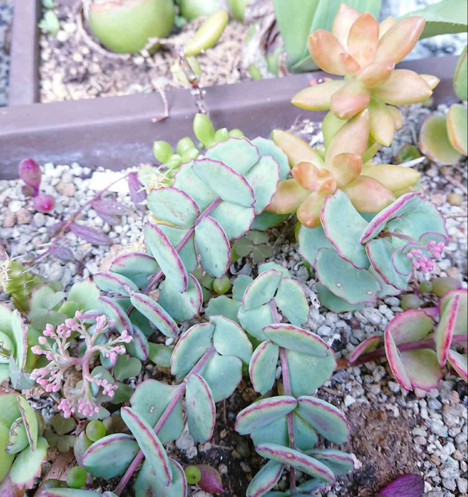 ミセバヤのお花と銘月?が紅葉してきました💓少しずつ色んなところで多肉ちゃんたちがほんのり色づいているのが可愛いくて🍁みつけると嬉しくなります😍