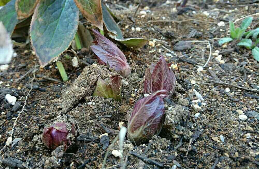 寒いけど 蕾が頭を出してきましたよ❕もう 嬉しくて 嬉しくて トキメキ❤です