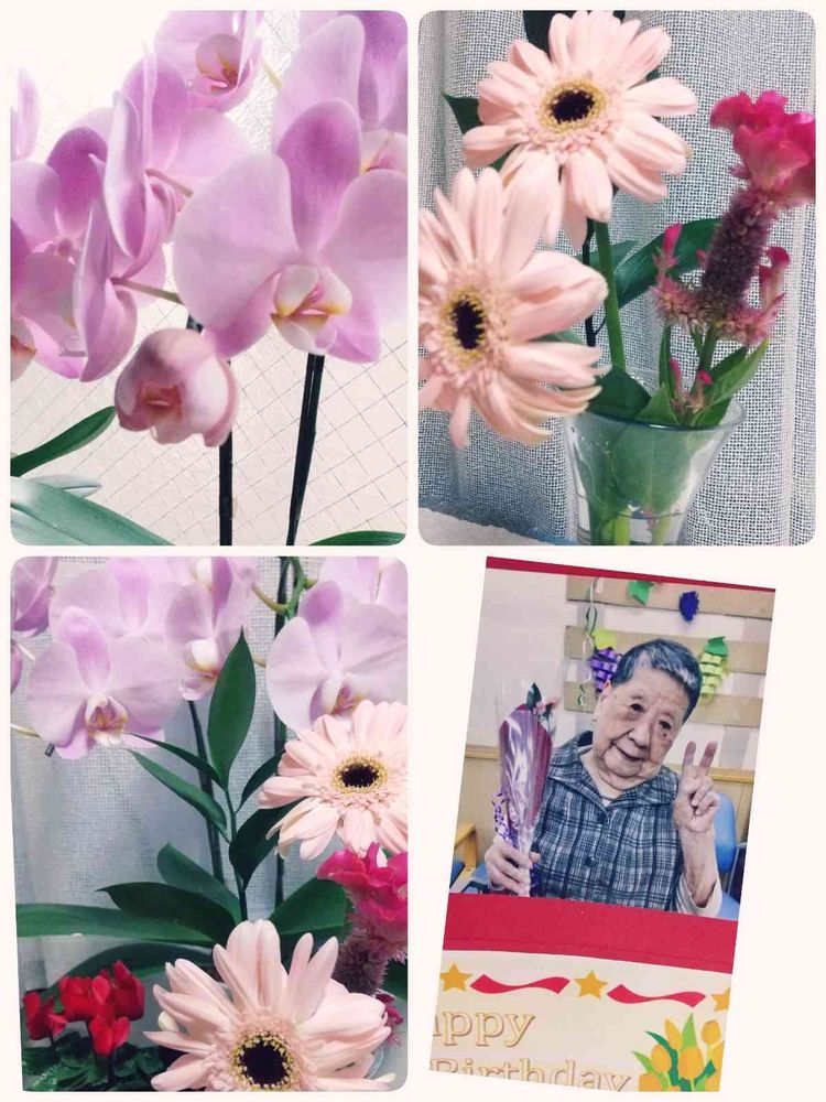 ガーベラ,胡蝶欄,白寿のお祝い 母ですの投稿画像