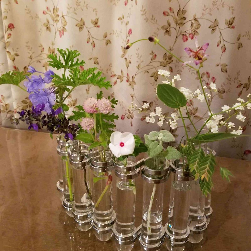 なんだか理科室の試験管みたい〜シャープな感じ、お花とよく似合ってますね