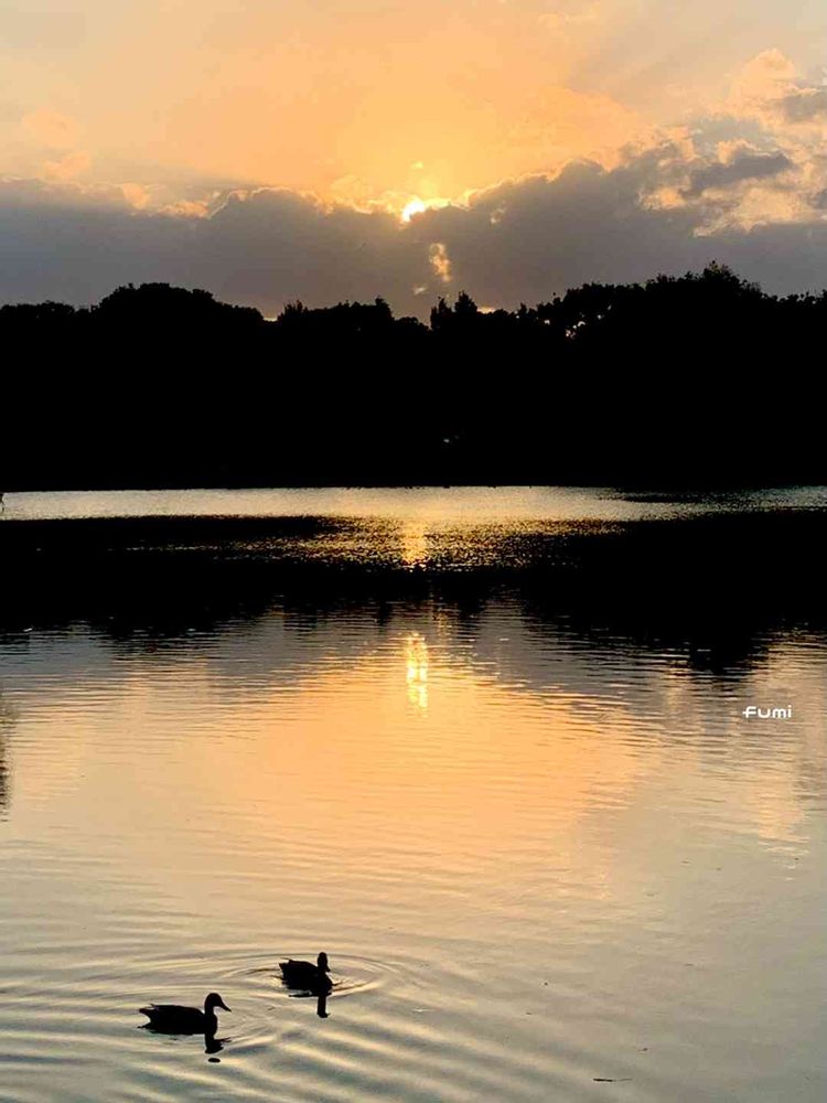 夕陽を見ていたら鴨たちが視界に入り、特別参加していただきました😆👍