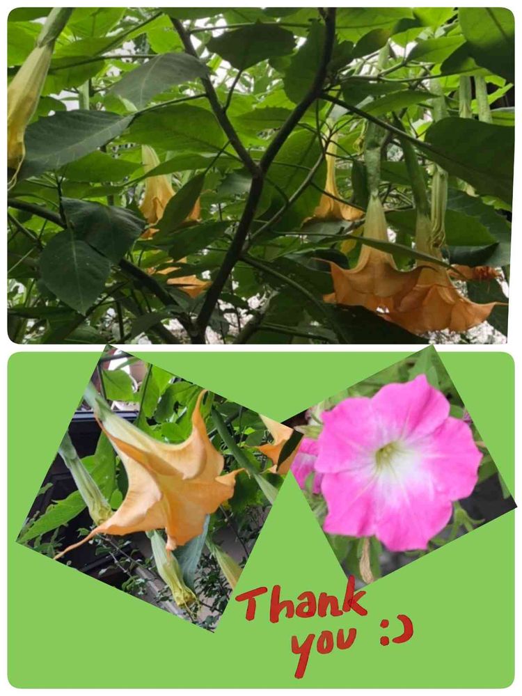 エンゼルストランペットはあちらこちらで、よく見かけます🎵