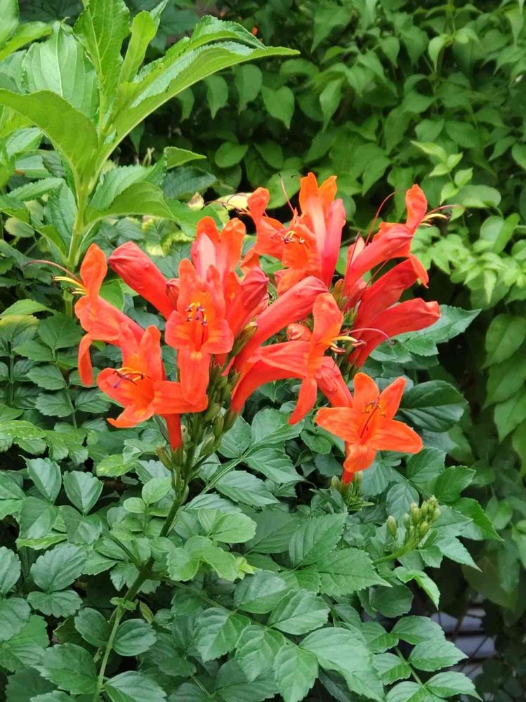 初めて見たちょっと珍しいこの花は ノウゼンカズラの仲間ですが 少し小振りで可愛いので ヒメノウゼンカズラと呼ばれています。