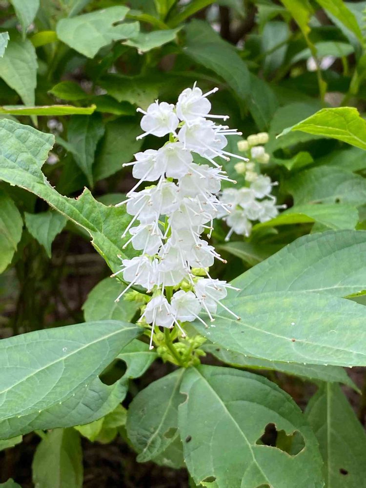 8月下旬から10月上旬に白い穂状の花を咲かせます。
