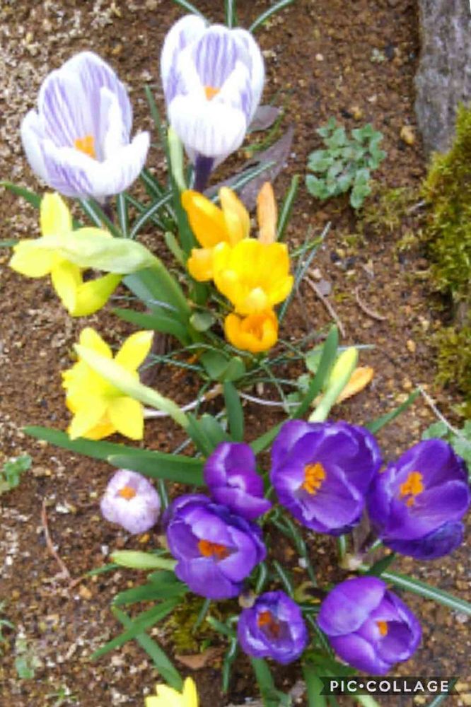 クロッカスが咲くと 漸く春なんですよ💜💮💛🌿