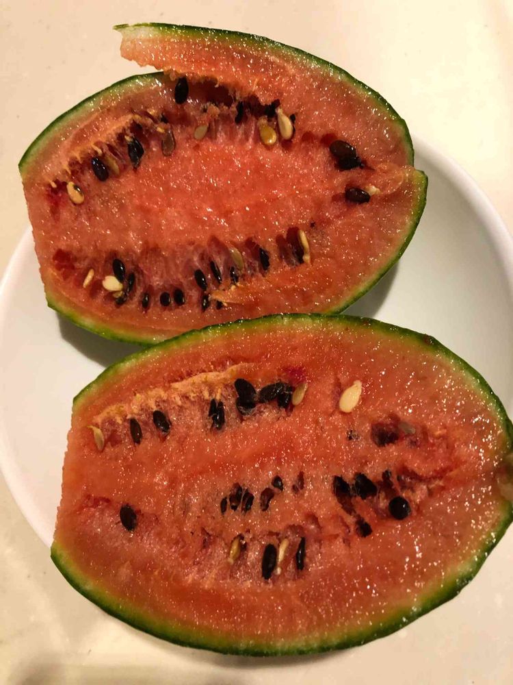 スイカお片付けしたので久しぶりのスイカ🍉2個目はだべれなかったので1個目から、2ヶ月最期のスイカ🍉水分補給に1人分まあまあの甘さで美味しかった😋
