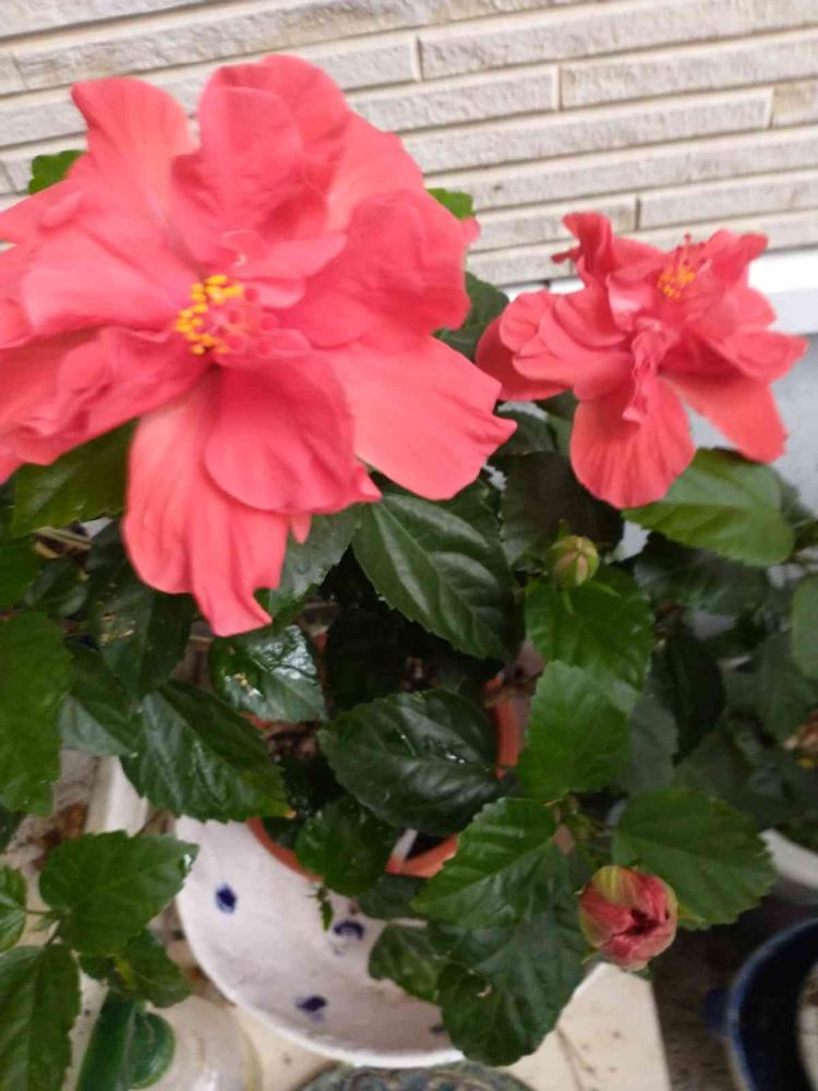 朝、車に乗ろうとしたら 赤い八重のハイビスカス🌺咲きました