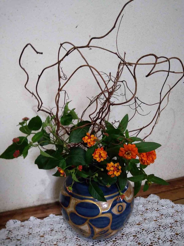 勢いのあるお花ですね。花瓶がとても個性的、使ってみたいです😆💓👍