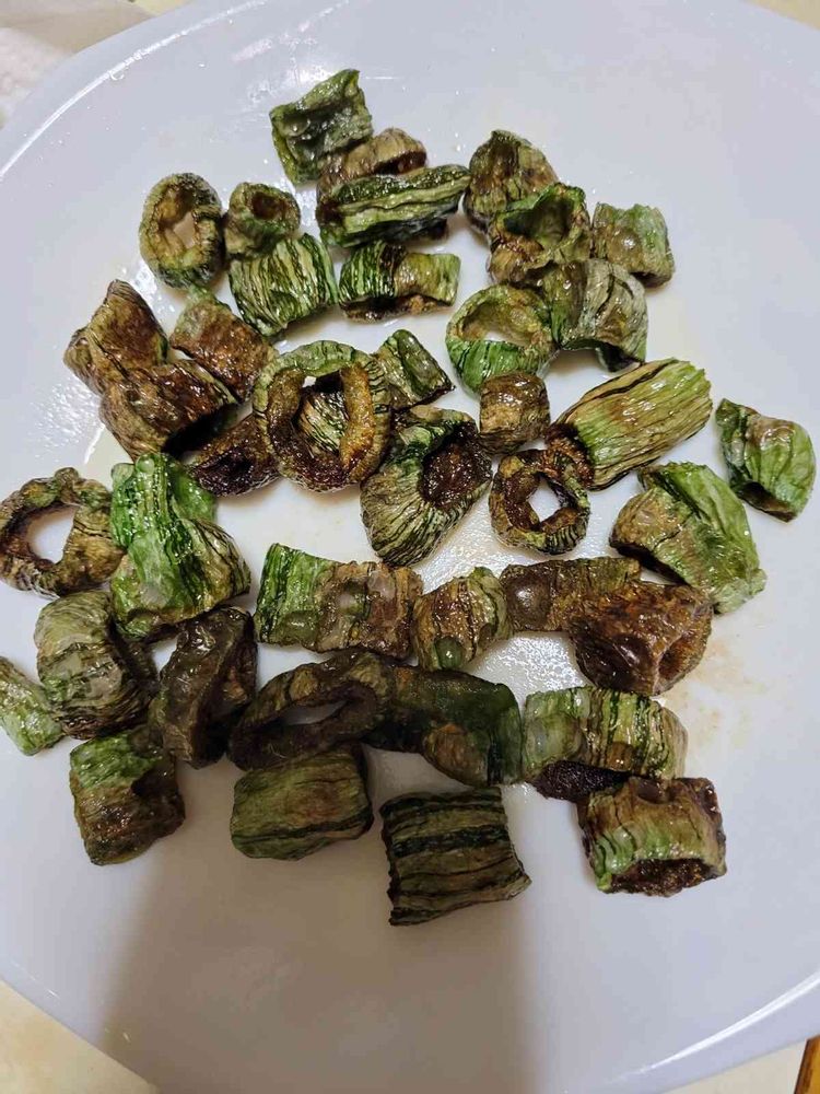 生でも塩揉みでもOK👌ゴーヤと同じ成分らしいからヘビチップを作ったらゴーヤと一緒美味しい病みつきになるわ😊✌👌最初匂い嫌だったがオツマミならいけるよ