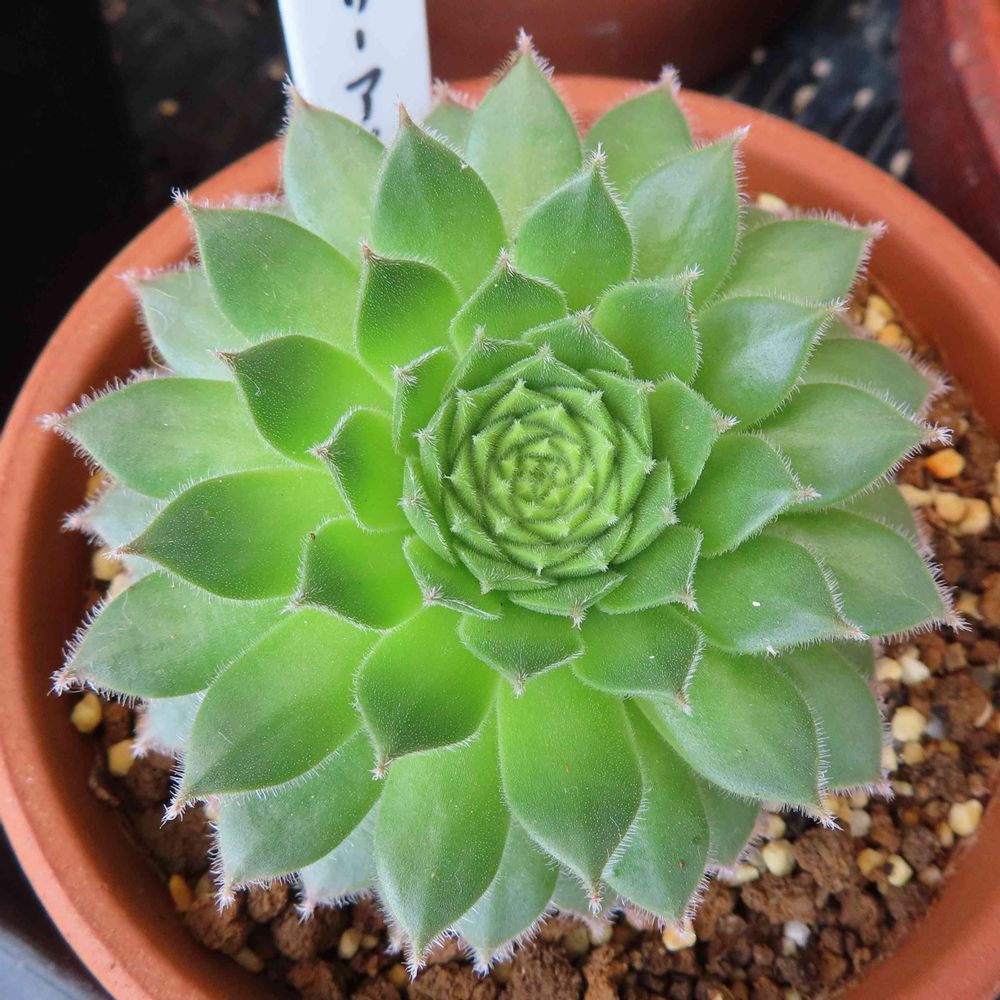 爪先がほんの少しだけ色付いてきたセンペルビウムのラズベリーアイス。ベースの緑色も鮮やかな色になってきて,まるで下からライトアップされているかのよう。