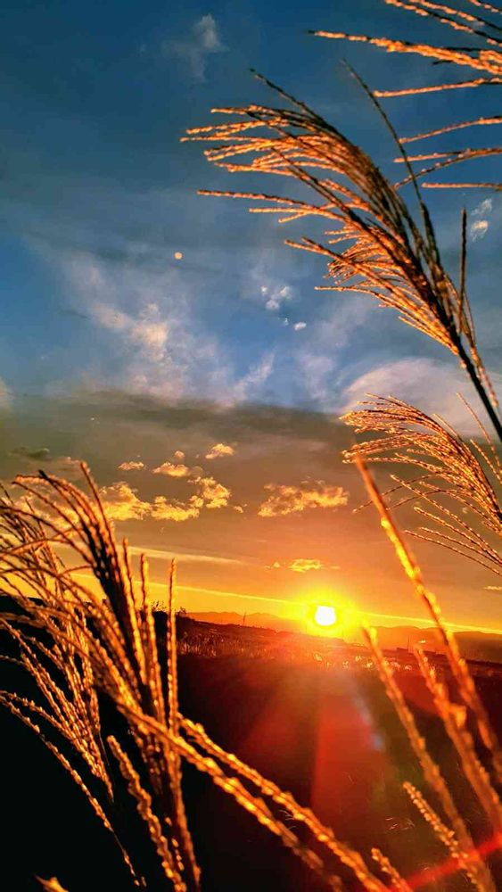 夕陽にススキ🌾が似合います。