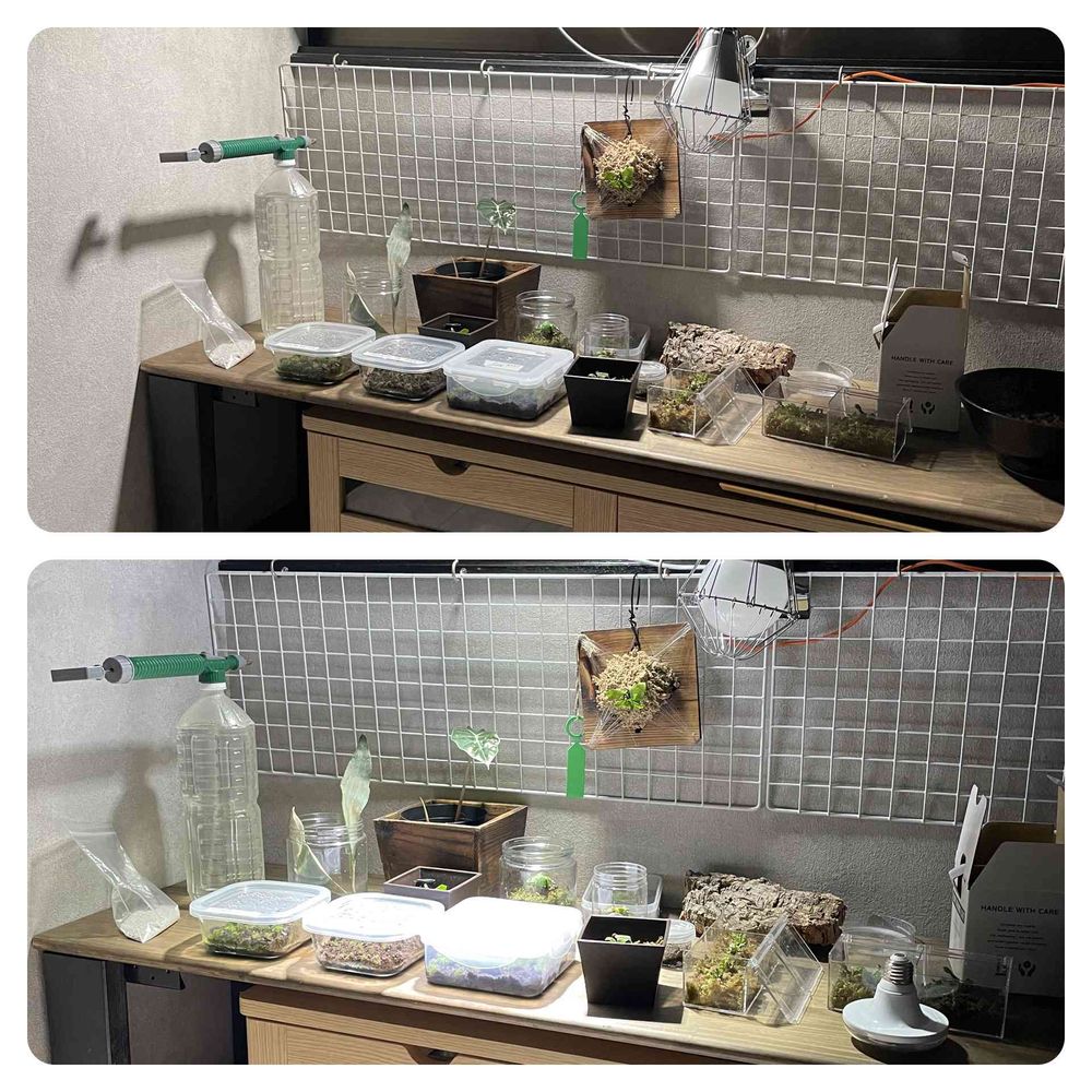 [@id:2703767] 、タッパーのが胞子培養ですよ。写真に写り込んでるのはそこそこ大きくなってる奴か良い値段する胞子の奴になります😅