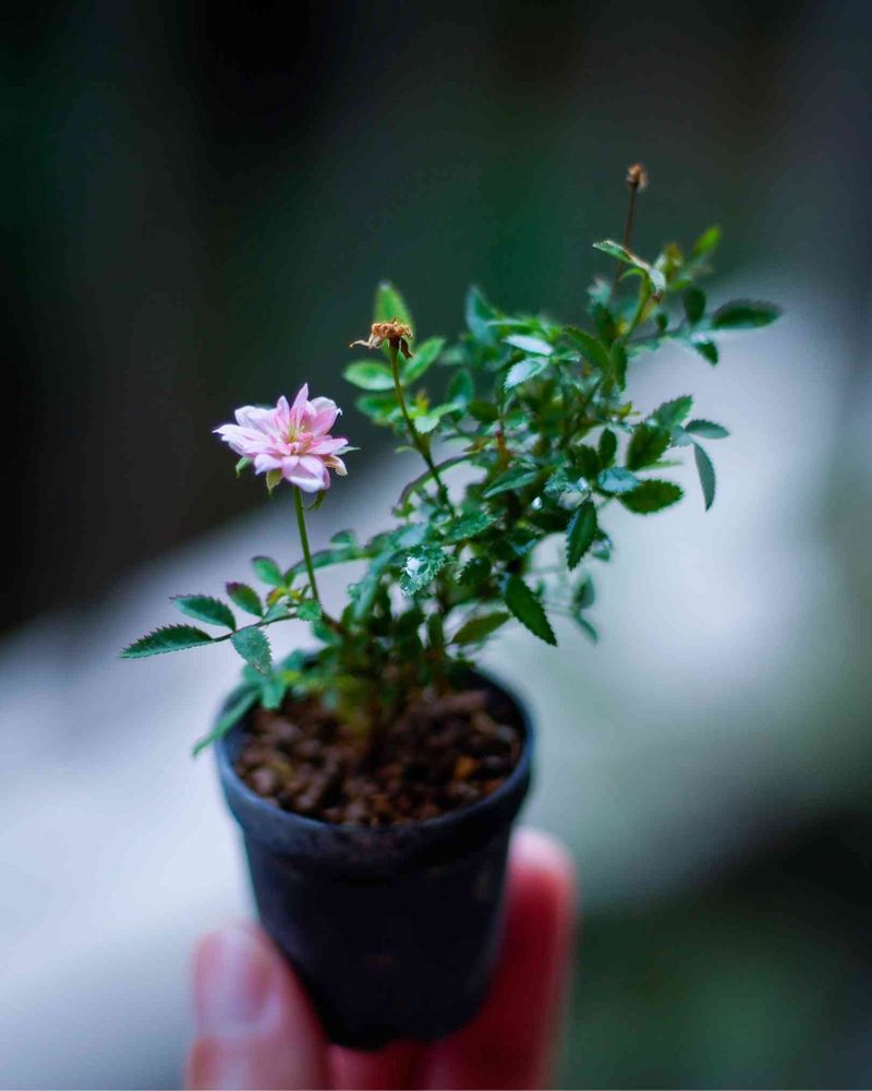 思わぬ展開でミニ盆栽の大先輩からいただいてしまった小さな小さなバラ✨可愛いすぎる😍枯らさないように頑張らないと!
