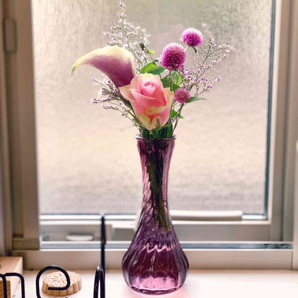 最近あまり使っていなかったパープルの花瓶を引っ張り出してきて飾りました。