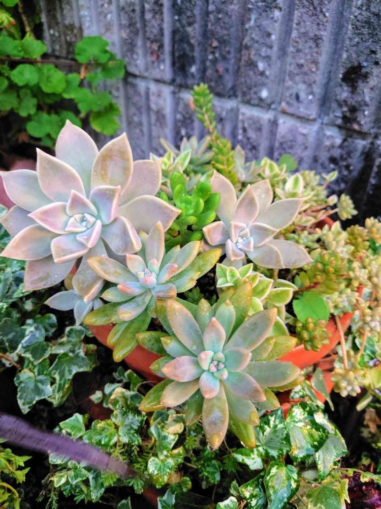 うちもあちこちにあるけど 他の多肉と一緒にあのスリット鉢で軒下に置いてあるのはあんまり育たない。