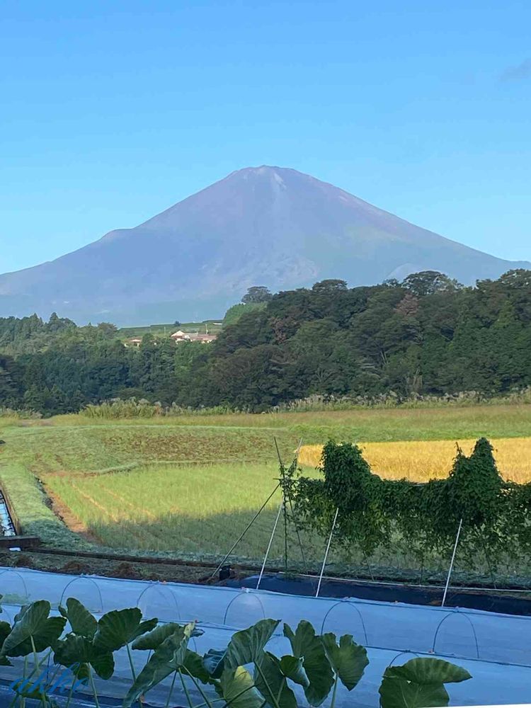 今朝の富士山と、刈り残った稲と、山芋と里芋の畑